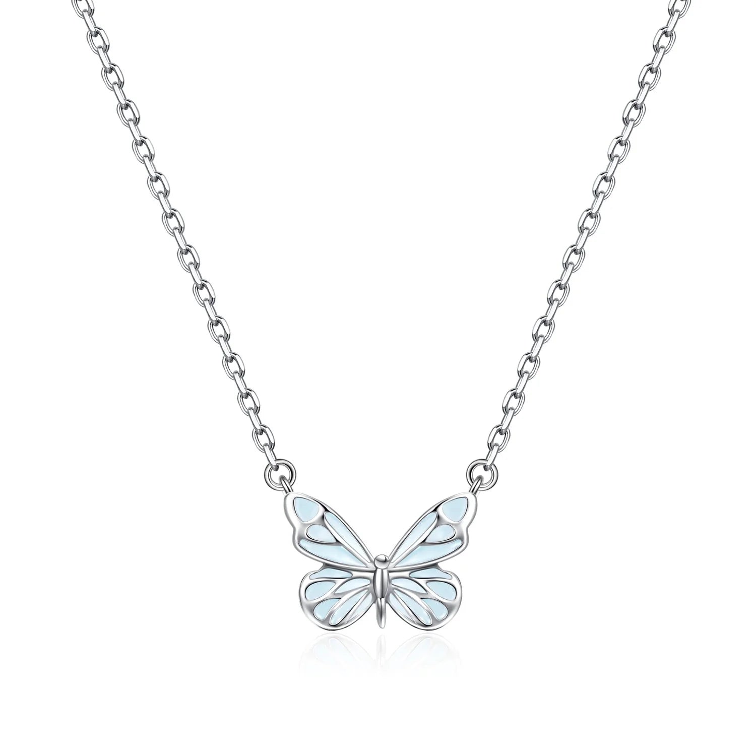 淡い蒼の輝きが手元をドラマチックに彩る「Orarim Butterfly Necklace」。